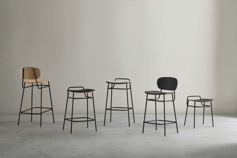 The industrial character of the Fosca chair is the result of a framework of rigorous metal lines. A light collection that comes now with a new backrest option more youthful and simplified.
