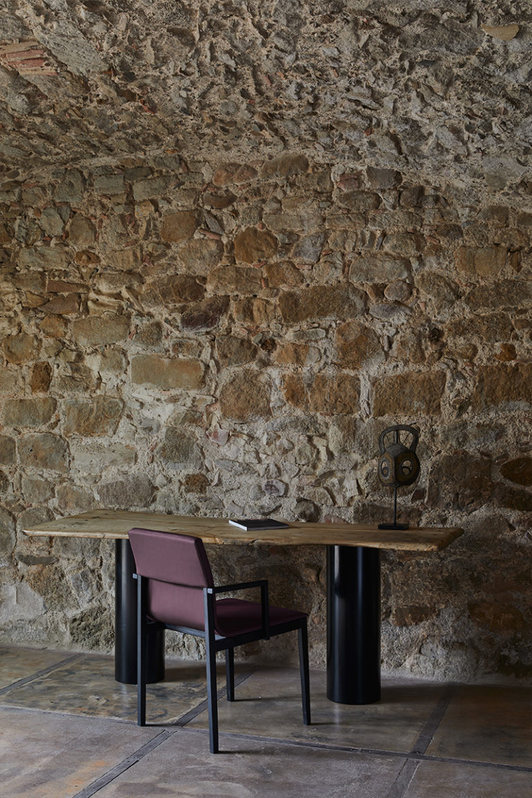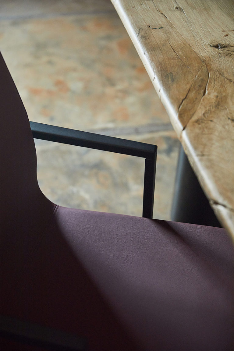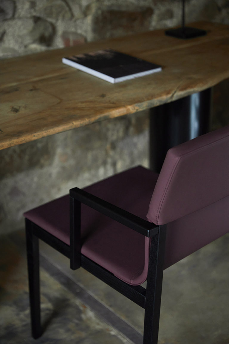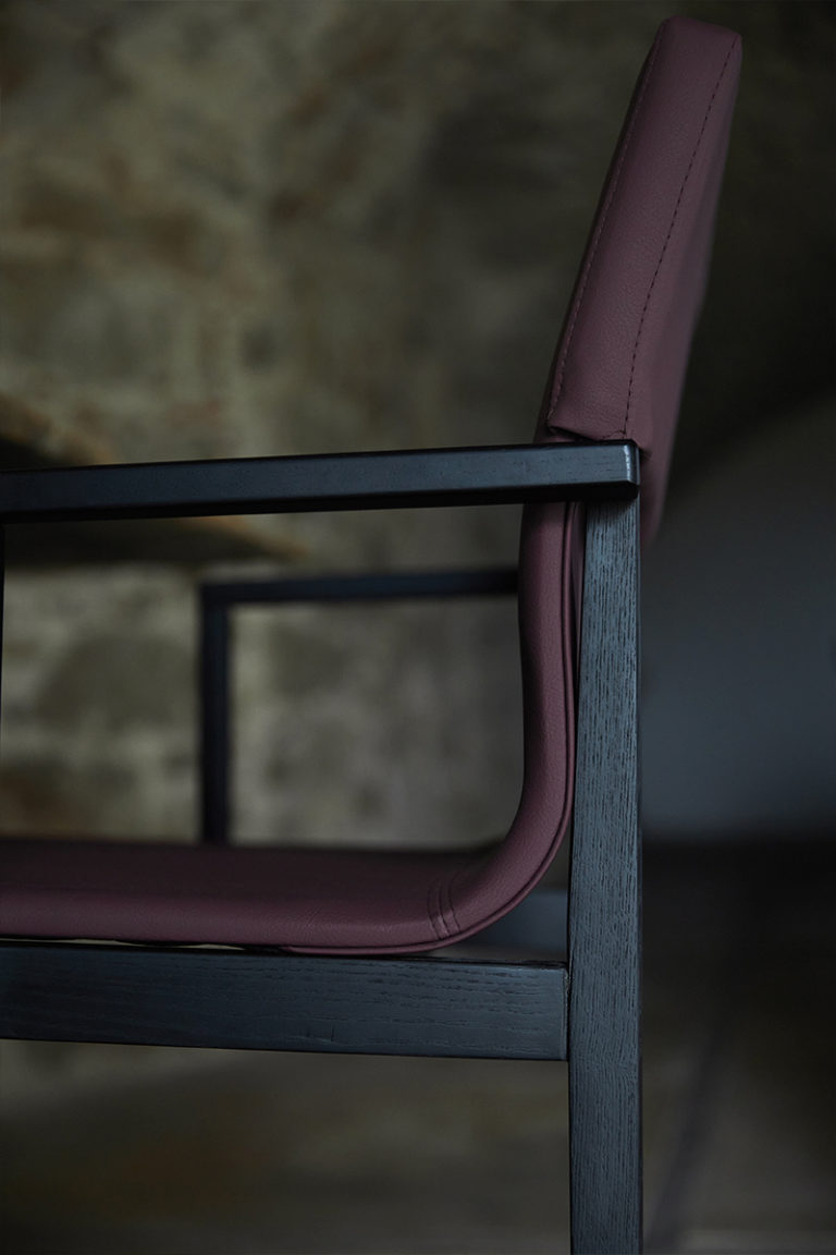 The studio has updated this 2010 design with a lighter touch. The collection, made up of an armchair, chair and stool, pays attention to a subtle curved detail on the low backrest. A gesture that perfectly sums up the aesthetic philosophy of Francesc Rifé and his team: simple of shapes, clean lines and precise details. Its leather body–which can go with or without a cushion–and natural or stained wood structure make it a sophisticated proposal to elegantly dress any home or contract space.