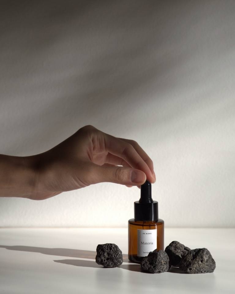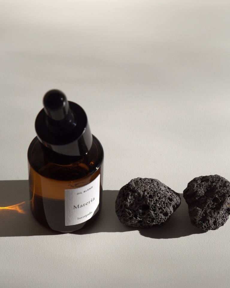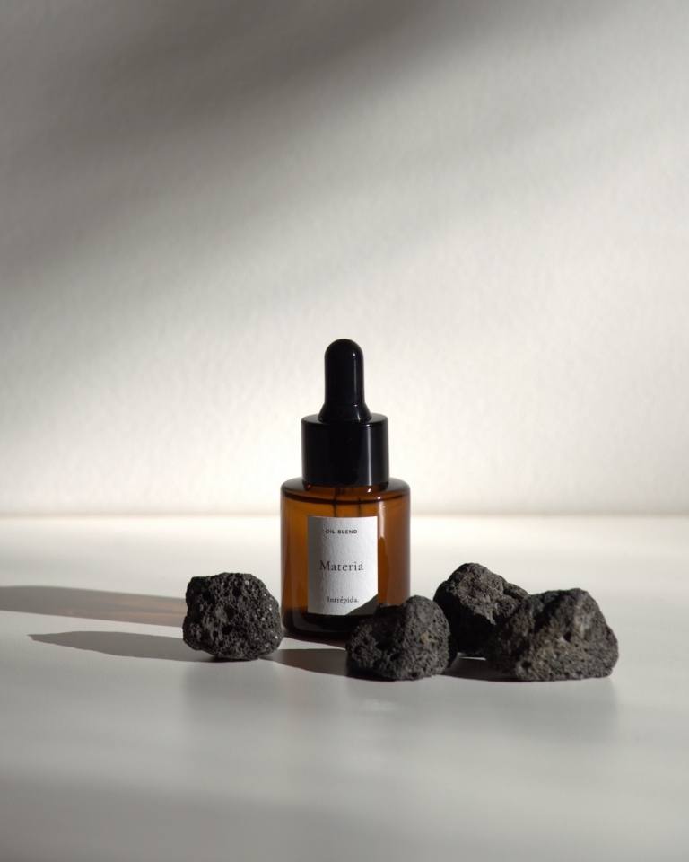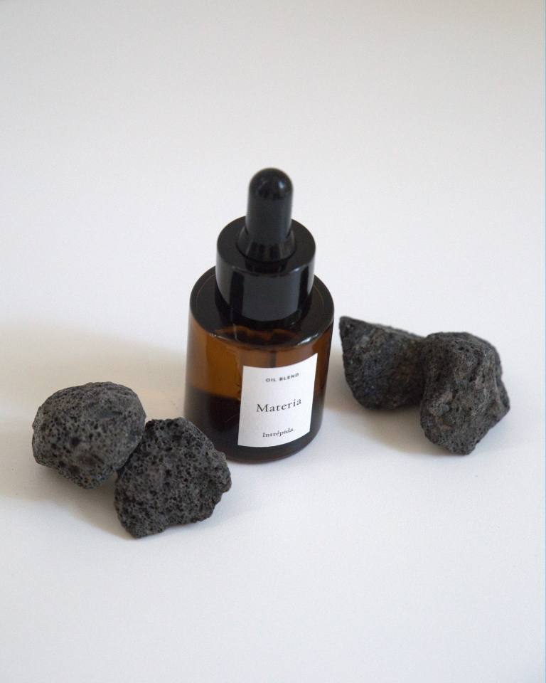 Three home fragrances by Intrépida Atelier. Designed for the domestic space, they refine the air with subtlety—like a light form of architecture. Each set includes 3 porous volcanic stones to help retain the aroma in the space for longer.