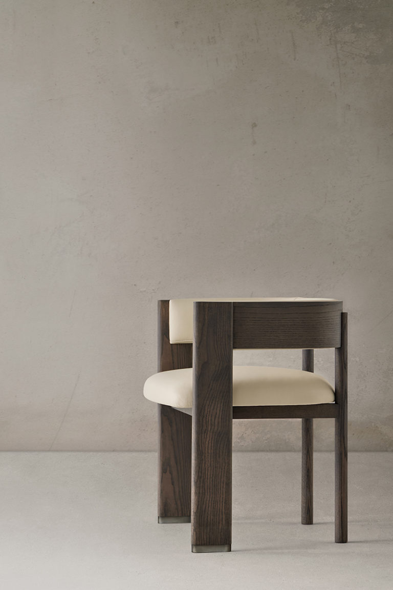 With great elegance and the precision of a tailor, this collection, including a chair, sofa, and armchair, represents a different future for classic lines. It is a solid proposal built in wood characterized by the flat expression of the front legs and the metallic detail of its base. The chair and armchair have a curved backrest that can be seen inside with the same upholstery as the seat, while its rear legs are rounded to gain lightness in the design. The sofa focuses on the shape of its arms, which can be upholstered on the upper part to improve comfort.