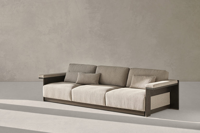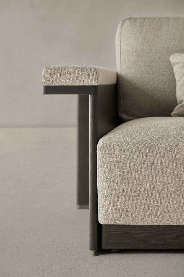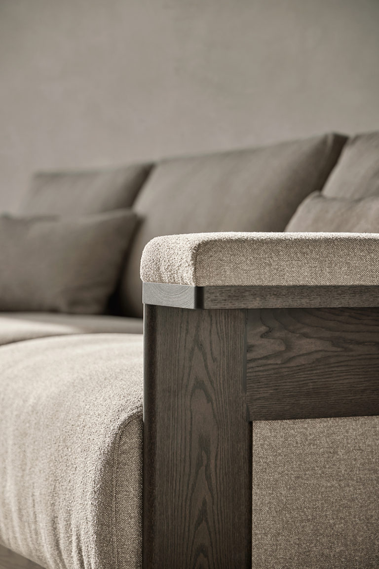 With great elegance and the precision of a tailor, this collection, including a chair, sofa, and armchair, represents a different future for classic lines. It is a solid proposal built in wood characterized by the flat expression of the front legs and the metallic detail of its base. The chair and armchair have a curved backrest that can be seen inside with the same upholstery as the seat, while its rear legs are rounded to gain lightness in the design. The sofa focuses on the shape of its arms, which can be upholstered on the upper part to improve comfort.
