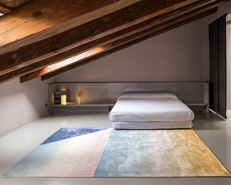 Fascinated by the work of Mark Rothko, Francesc Rifé has designed for NOW Carpets KO, a collection of rugs with a geometric patterns based on Abstract Expressionism. The result is the five canvases made in 100% bamboo silk that gather the sensitivity of pastel tones, the intensity of warm colors and the melancholy of dark effects. Rothko’s paintings were the starting point to apply the combination of colors and the exploration of light in depth. A collection with a strong presence of geometric lines, hand-woven by craftsmen.