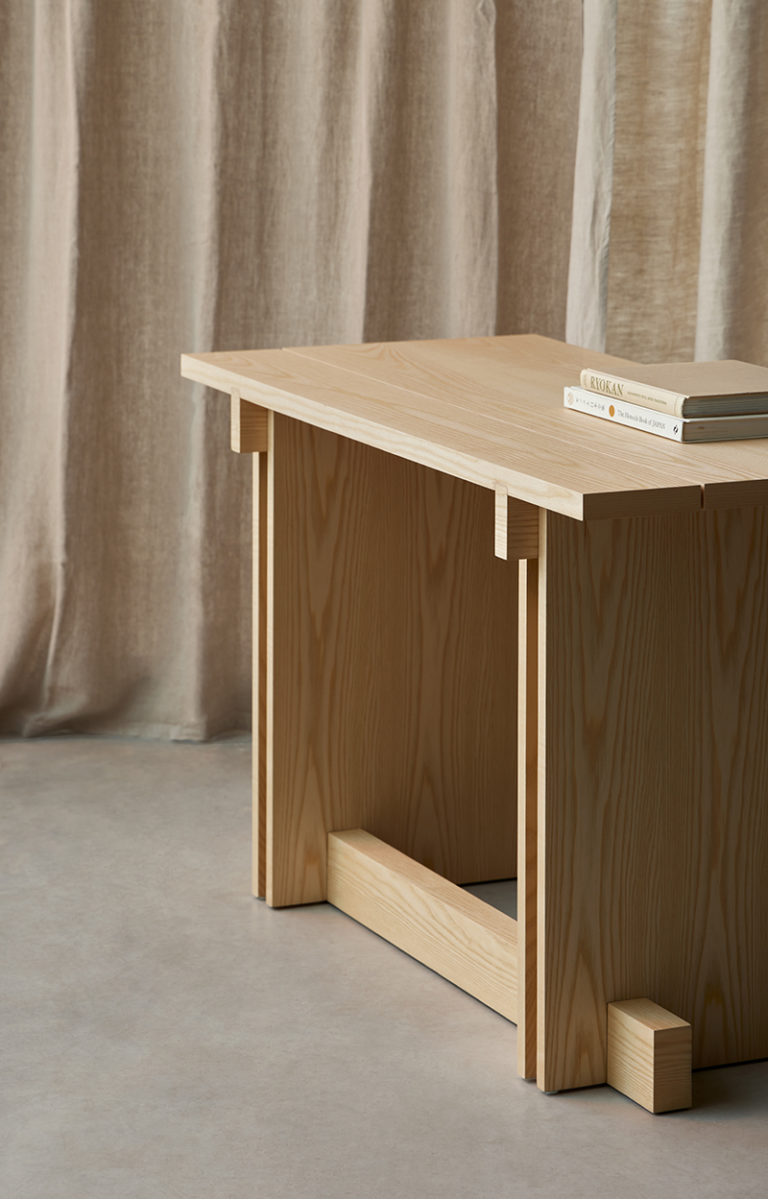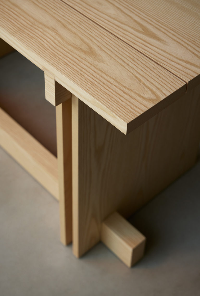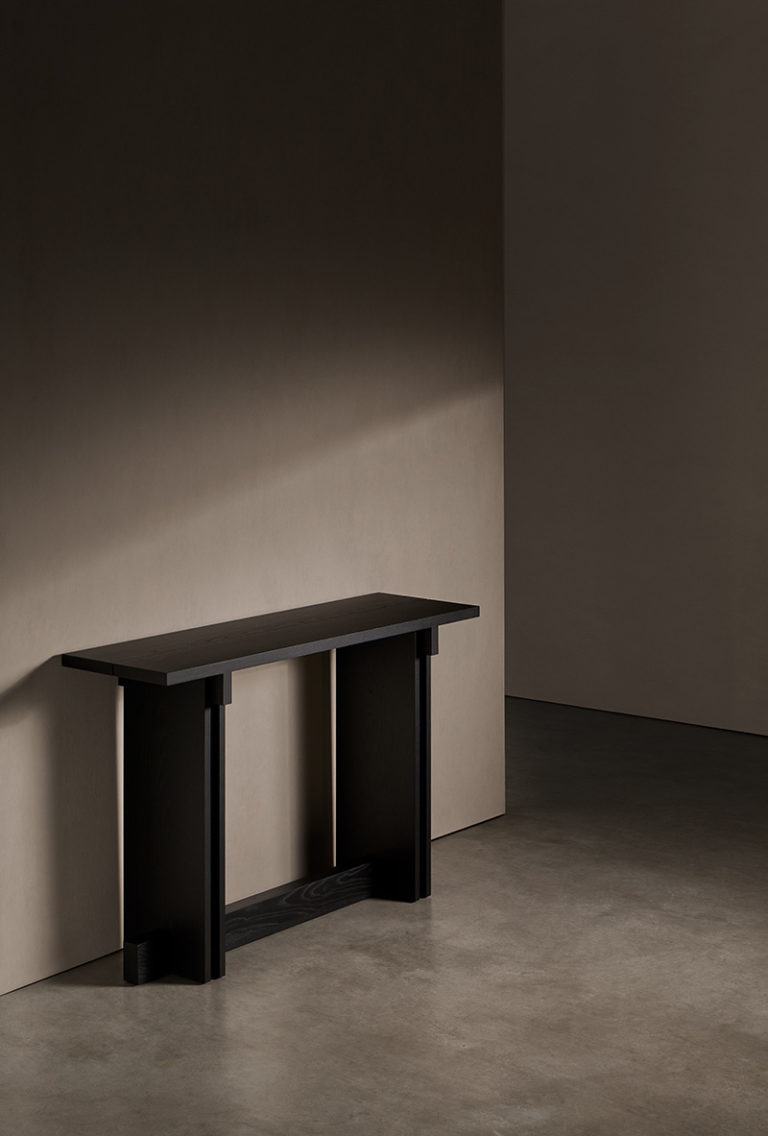 With references to both the past and the present, Rak can be interpreted as a rationalist architectural relationship. The hard angles and the overlap and intersection of natural or treated ash wood boards define the coffee tables, side tables, and consoles that make up the collection. It is a warm and welcoming design that, despite its simplicity, will add personality to any interior.