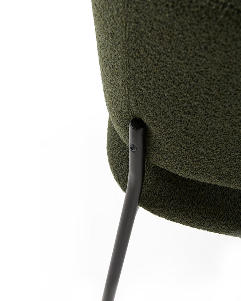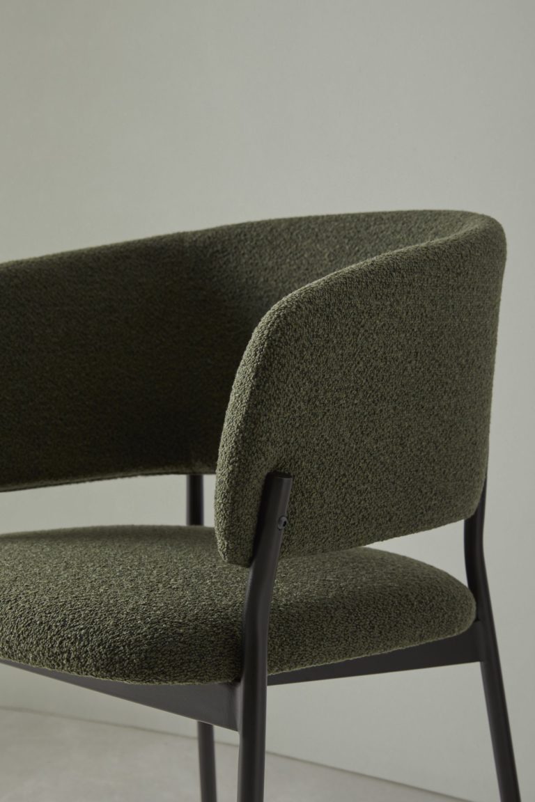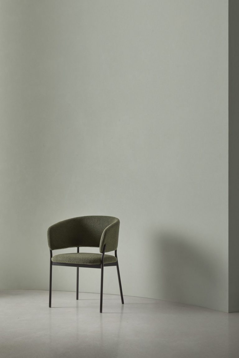 A sophisticated chair whose body rests on a seen metal structure conceived as the minimalist element of the whole piece. Its upholstered and ergonomic design will give any space a warm and timeless expression.