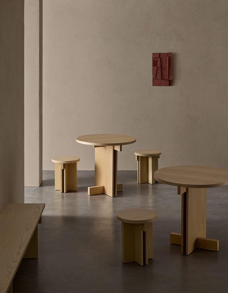 With references to both the past and the present, Rak can be interpreted as a rationalist architectural relationship. The hard angles and the overlap and intersection of natural or treated ash wood boards define the coffee tables, side tables, and consoles that make up the collection. It is a warm and welcoming design that, despite its simplicity, will add personality to any interior.