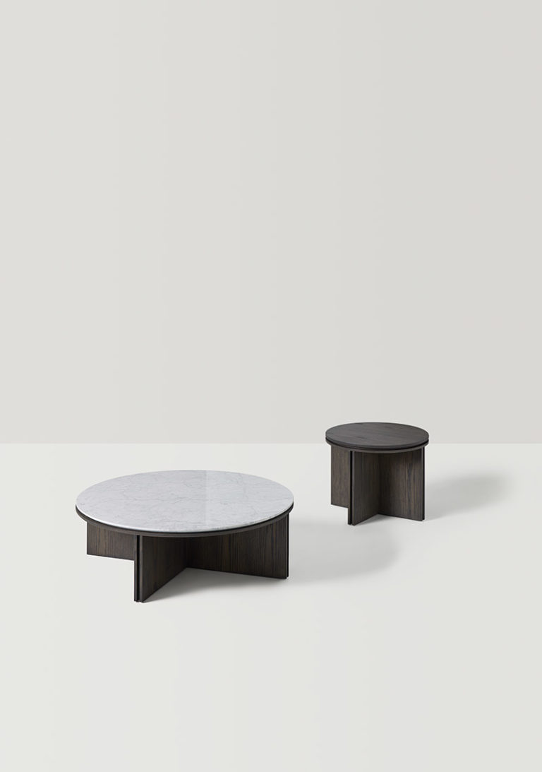 Through the simplicity that defines the work of Francesc Rifé’s studio, the geometric discourse of this new proposal for side and center tables is built. A refined design, marked by the double line’s detail, creates a special relationship between the legs and the wooden, marble, or ceramic top, available in circular, rectangular, or square shapes. The collection comes in two heights, meaning they can work well in groups and alone.