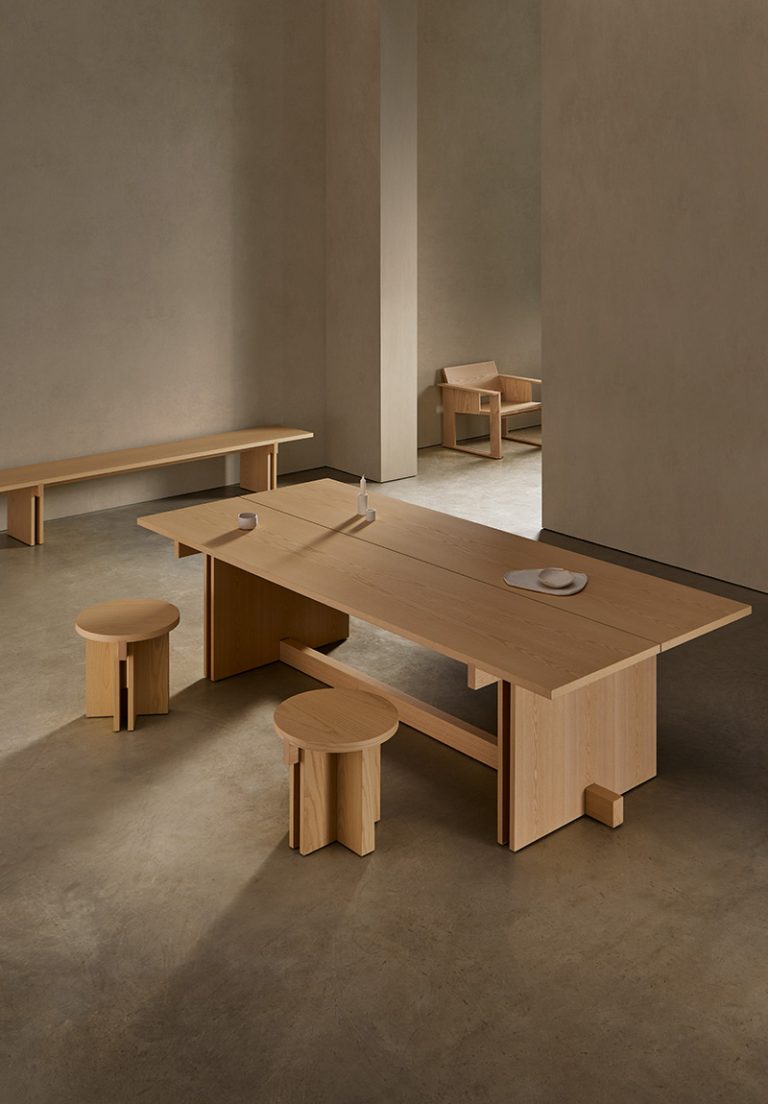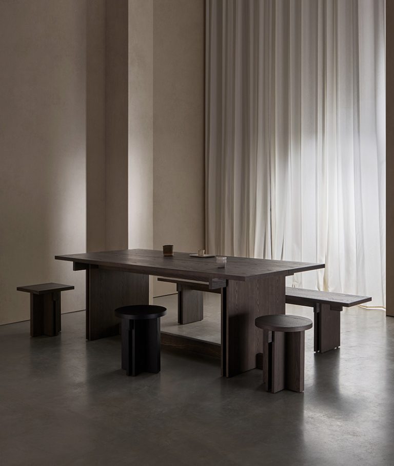 Con referencias tanto al pasado como al presente, Rak puede interpretarse como un relato arquitectónico racionalista. Los ángulos duros y la superposición e intersección de tablas de madera de fresno, natural o teñido, definen estas mesas de centro, auxiliares y consola que conforman la colección. Se trata de un diseño cálido y acogedor que, a pesar de su sencillez, agregará personalidad a cualquier interior.