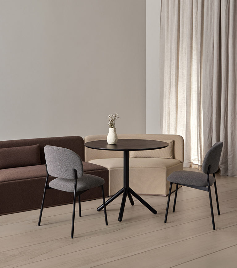 Las versiones Wood y Metal de la familia RC incorporan nuevos acabados que apelan directamente al tacto. El contraste entre la estructura minimalista y la expresividad de los nuevos tejidos, marcados por pliegues y texturas, ofrece una sensación más envolvente sin renunciar a la simplicidad del diseño.